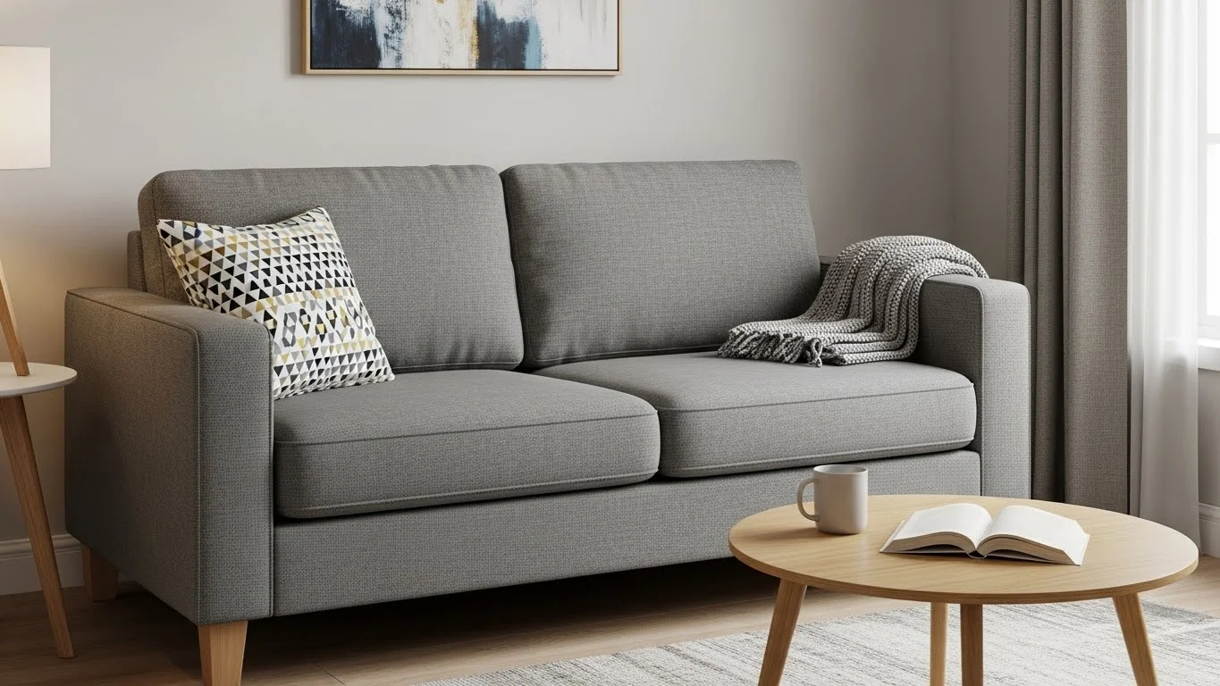 프레임 소재는 내구성을 좌우합니다. 원목이나 금속 프레임은 튼튼하지만 가격이 올라가고, 합판 프레임은 저렴하지만 습기에 약할 수 있습니다. 쿠션 소재도 체크하세요. 고밀도 우레탄폼은 꺼짐이 적고 복원력이 좋지만, 저밀도 제품은 1-2년 안에 푹 꺼질 수 있습니다.